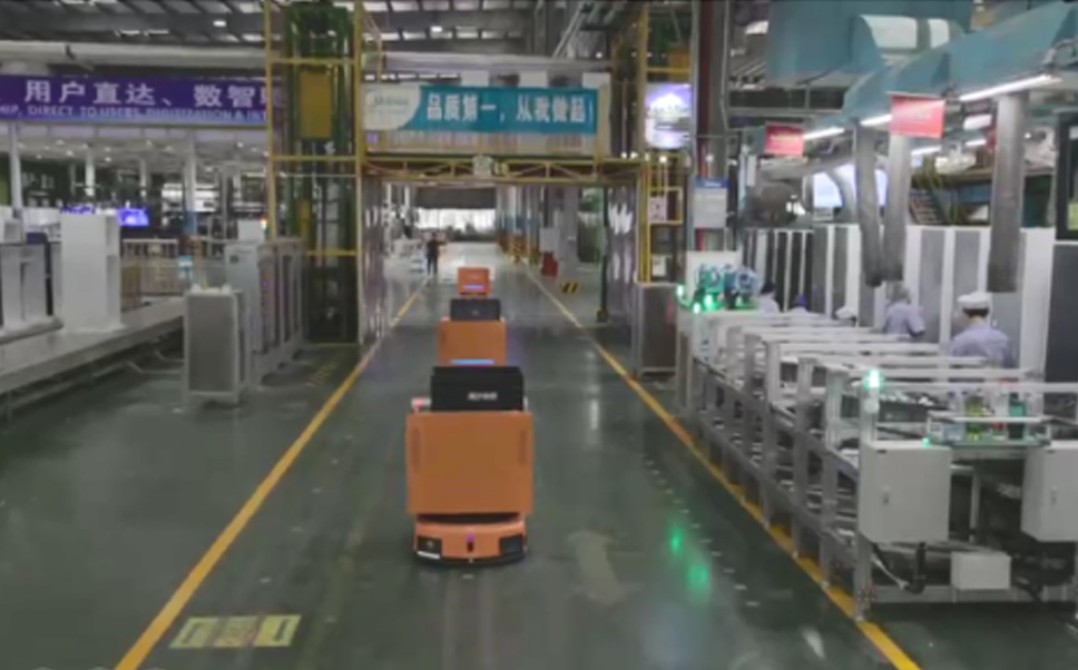 为车载冰箱物流配送打造的智能解决方案,,,,包含产中物流通过潜伏举升AMR搬运至线边,,,,产后成品物流智能仓储,,流程包含产中物流智能齐套入库,,,线边安灯叫料AMR智能配送至线边,,,,成品入库、、、、出库,,,通过无人堆高车机器人,,,,智能仓储管理替代人工作业管理,,,,实现更高存储、、、更高效率、、、、更具柔性化的解决方案。。。